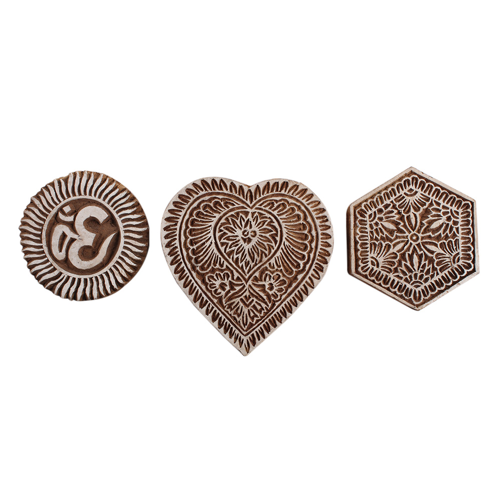 Set of 3 Piece New Mix Wooden Printing Block. Ideal for Using on Fabric, Paper, Canvas, etc. These Blocks can be use to Print with Oil Colors, Fabric Colors, Water Colors, Acrylic Colors and Vegetable Colors.