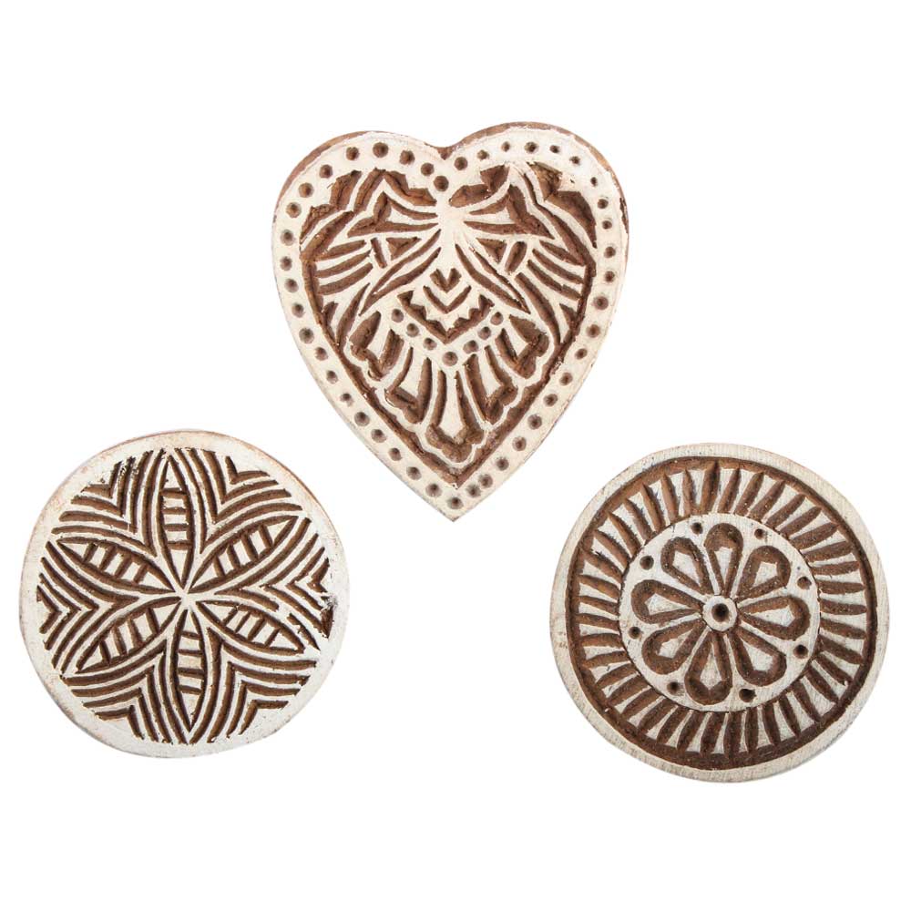Set of 3 Piece New Mix Wooden Printing Block. Ideal for Using on Fabric, Paper, Canvas, etc. These Blocks can be use to Print with Oil Colors, Fabric Colors, Water Colors, Acrylic Colors and Vegetable Colors.