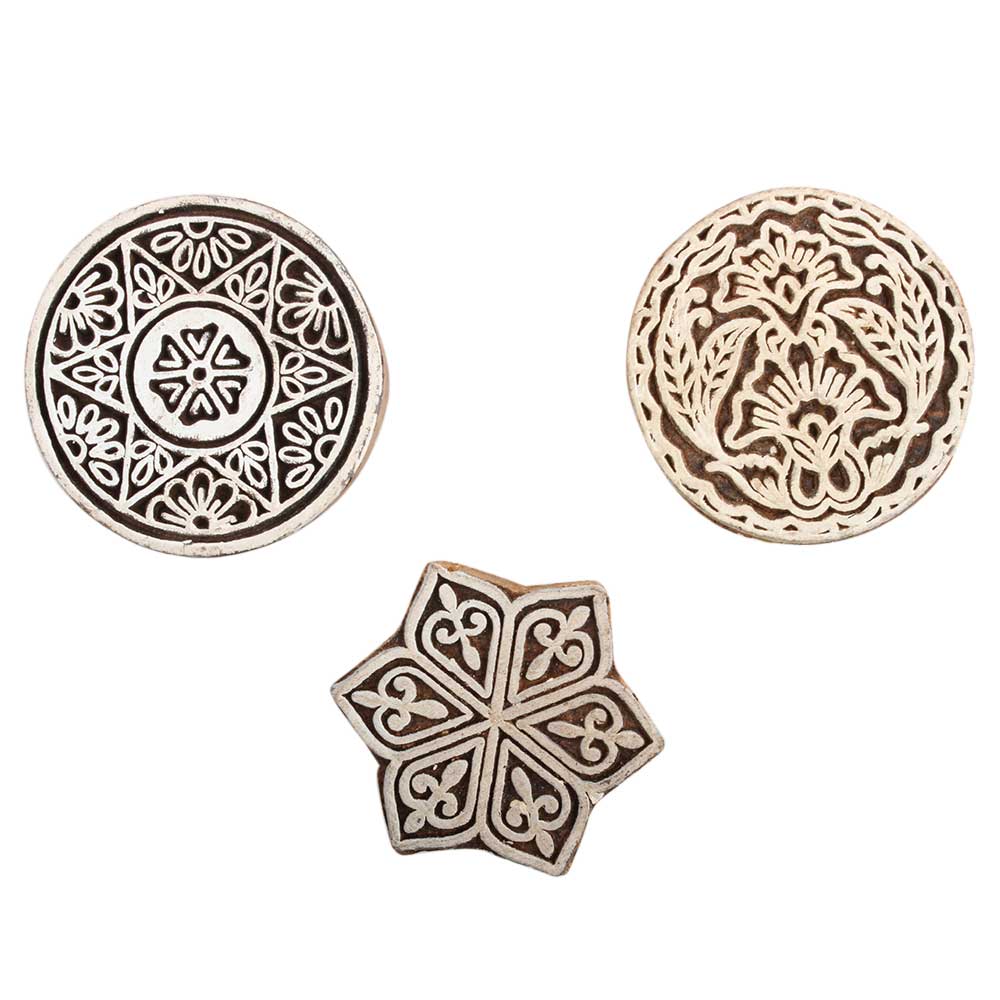 Set of 3 Piece New Mix Wooden Printing Block. Ideal for Using on Fabric, Paper, Canvas, etc. These Blocks can be use to Print with Oil Colors, Fabric Colors, Water Colors, Acrylic Colors and Vegetable Colors.