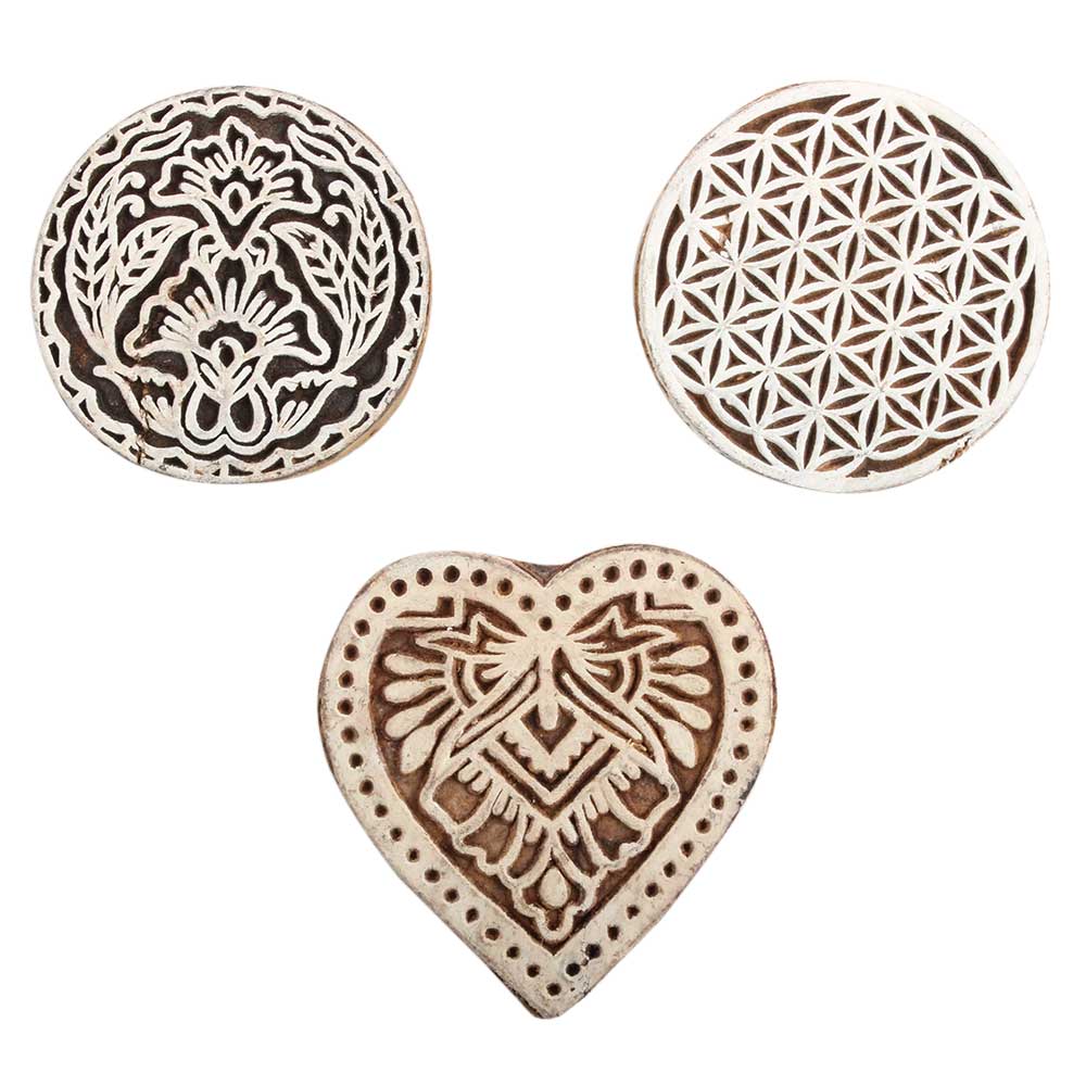 Set of 3 Piece New Mix Wooden Printing Block. Ideal for Using on Fabric, Paper, Canvas, etc. These Blocks can be use to Print with Oil Colors, Fabric Colors, Water Colors, Acrylic Colors and Vegetable Colors.