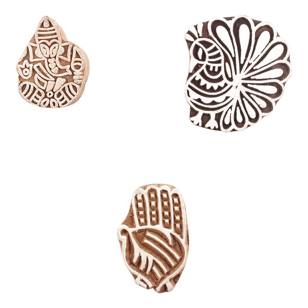 Set of 3 Piece New Mix Wooden Printing Block. Ideal for use on Fabric, Paper, Canvas, etc. These Blocks can be use to Print with Oil Colors, Fabric Colors, Water Colors, Acrylic Colors and Vegetable Colors.