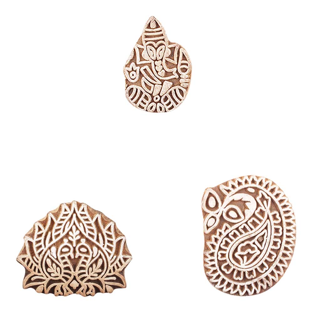 Set of 3 Piece New Mix Wooden Printing Block. Ideal for use on Fabric, Paper, Canvas, etc. These Blocks can be use to Print with Oil Colors, Fabric Colors, Water Colors, Acrylic Colors and Vegetable Colors.