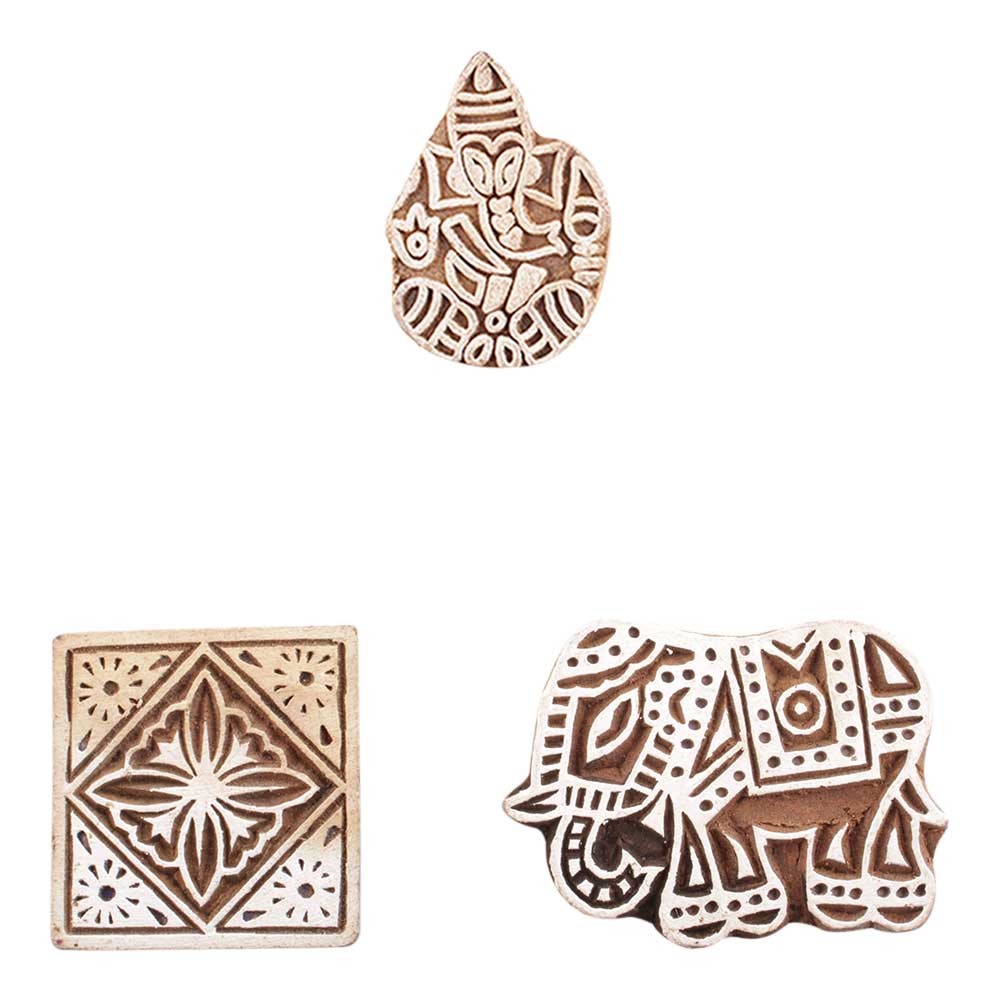 Set of 3 Piece New Mix Wooden Printing Block. Ideal for use on Fabric, Paper, Canvas, etc. These Blocks can be use to Print with Oil Colors, Fabric Colors, Water Colors, Acrylic Colors and Vegetable Colors.