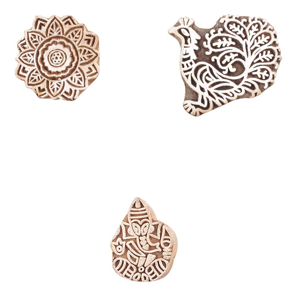 Set of 3 Piece New Mix Wooden Printing Block. Ideal for use on Fabric, Paper, Canvas, etc. These Blocks can be use to Print with Oil Colors, Fabric Colors, Water Colors, Acrylic Colors and Vegetable Colors.