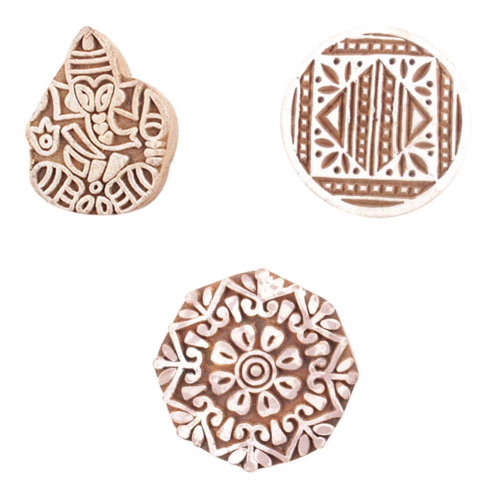 Set of 3 Piece New Mix Wooden Printing Block. Ideal for use on Fabric, Paper, Canvas, etc. These Blocks can be use to Print with Oil Colors, Fabric Colors, Water Colors, Acrylic Colors and Vegetable Colors.