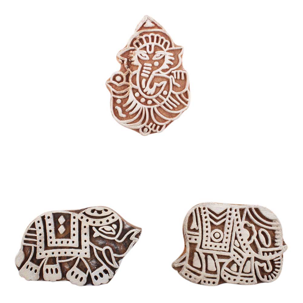 Set of 3 Piece New Mix Wooden Printing Block. Ideal for use on Fabric, Paper, Canvas, etc. These Blocks can be use to Print with Oil Colors, Fabric Colors, Water Colors, Acrylic Colors and Vegetable Colors.