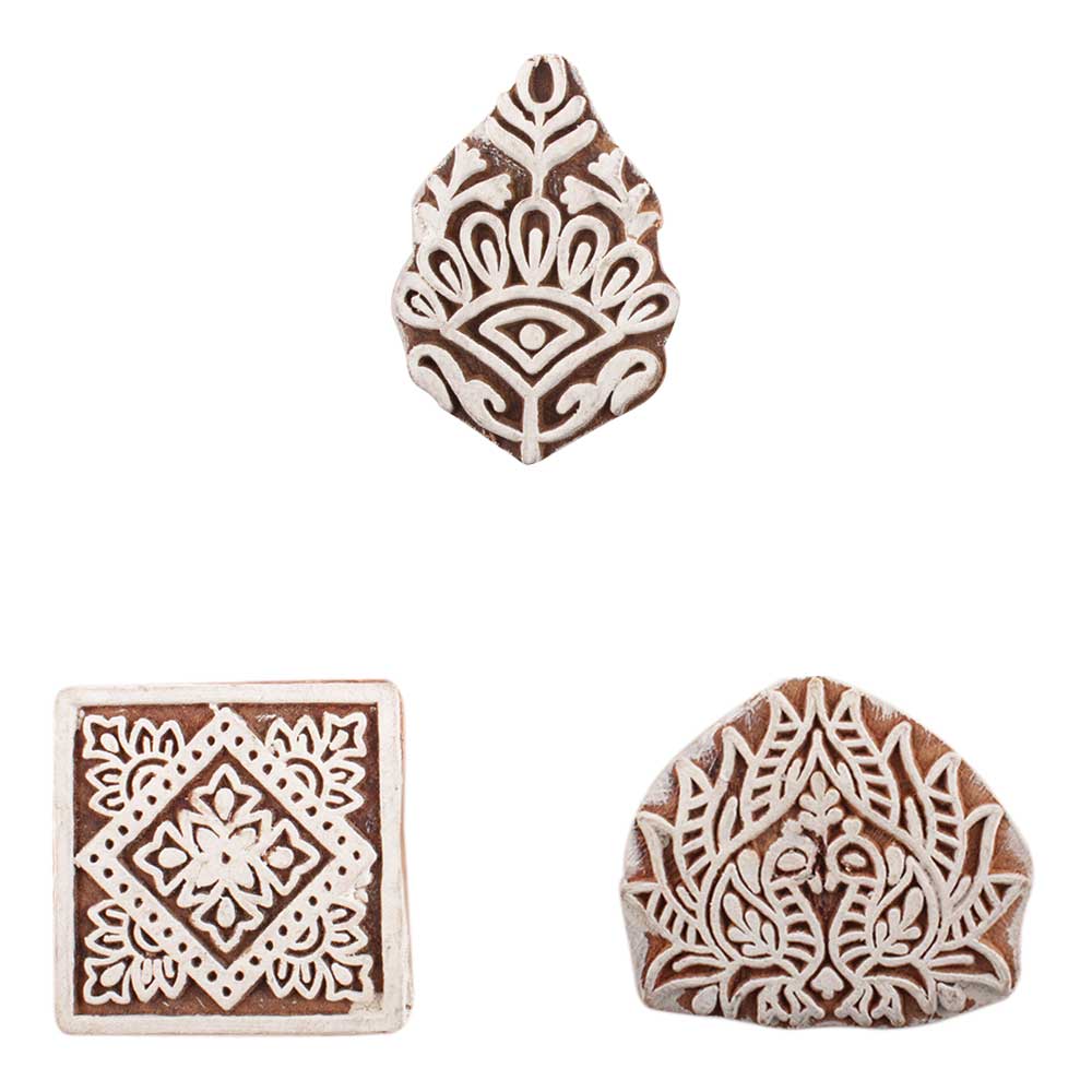 Set of 3 Piece New Mix Wooden Printing Block. Ideal for use on Fabric, Paper, Canvas, etc. These Blocks can be use to Print with Oil Colors, Fabric Colors, Water Colors, Acrylic Colors and Vegetable Colors.