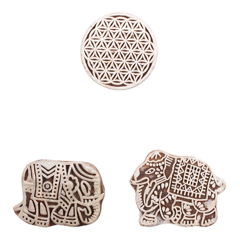 Set of 3 Piece New Mix Wooden Printing Block. Ideal for use on Fabric, Paper, Canvas, etc. These Blocks can be use to Print with Oil Colors, Fabric Colors, Water Colors, Acrylic Colors and Vegetable Colors.