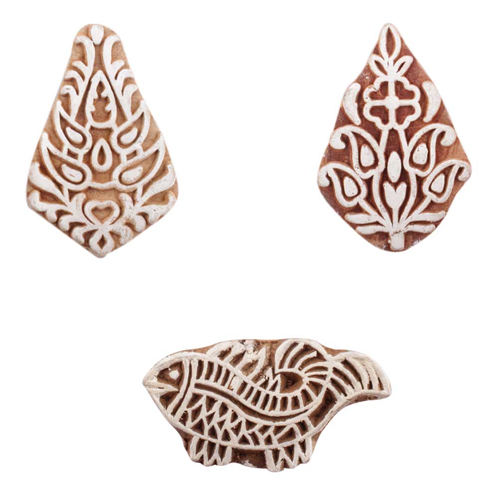 Set of 3 Piece New Mix Wooden Printing Block. Ideal for use on Fabric, Paper, Canvas, etc. These Blocks can be use to Print with Oil Colors, Fabric Colors, Water Colors, Acrylic Colors and Vegetable Colors.