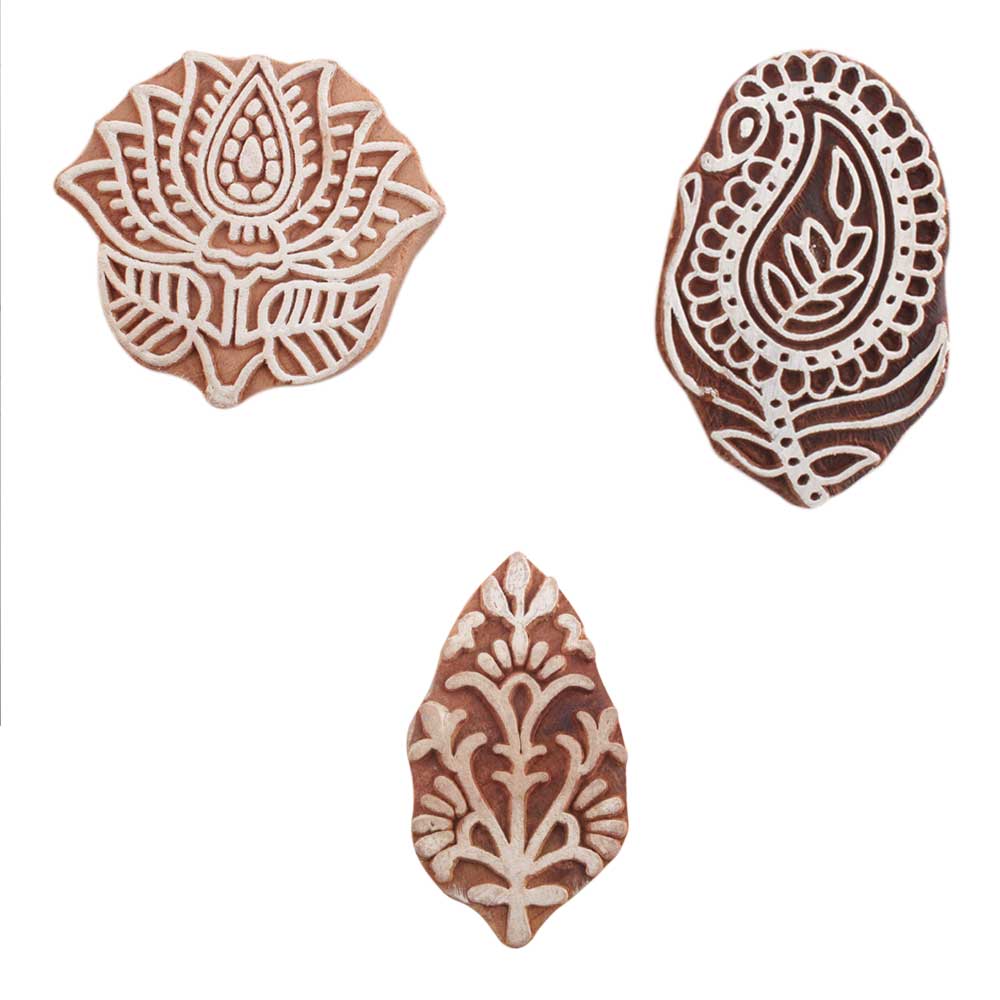 Set of 3 Piece New Mix Wooden Printing Blocks. Ideal for use on Fabric, Paper, Canvas, etc. These Blocks can be use to Print with Oil Colors, Fabric Colors, Water Colors, Acrylic Colors and Vegetable Colors.