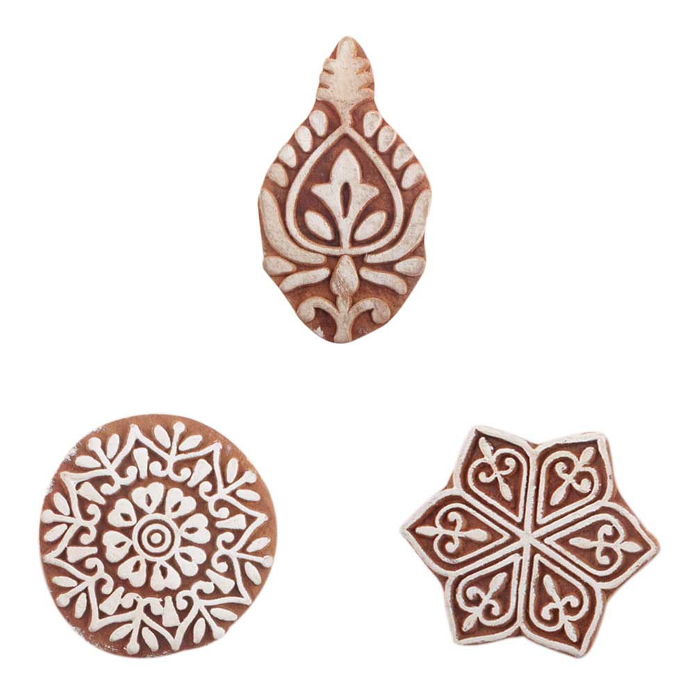Set of 3 Piece New Mix Wooden Printing Blocks. Ideal for use on Fabric, Paper, Canvas, etc. These Blocks can be use to Print with Oil Colors, Fabric Colors, Water Colors, Acrylic Colors and Vegetable Colors.