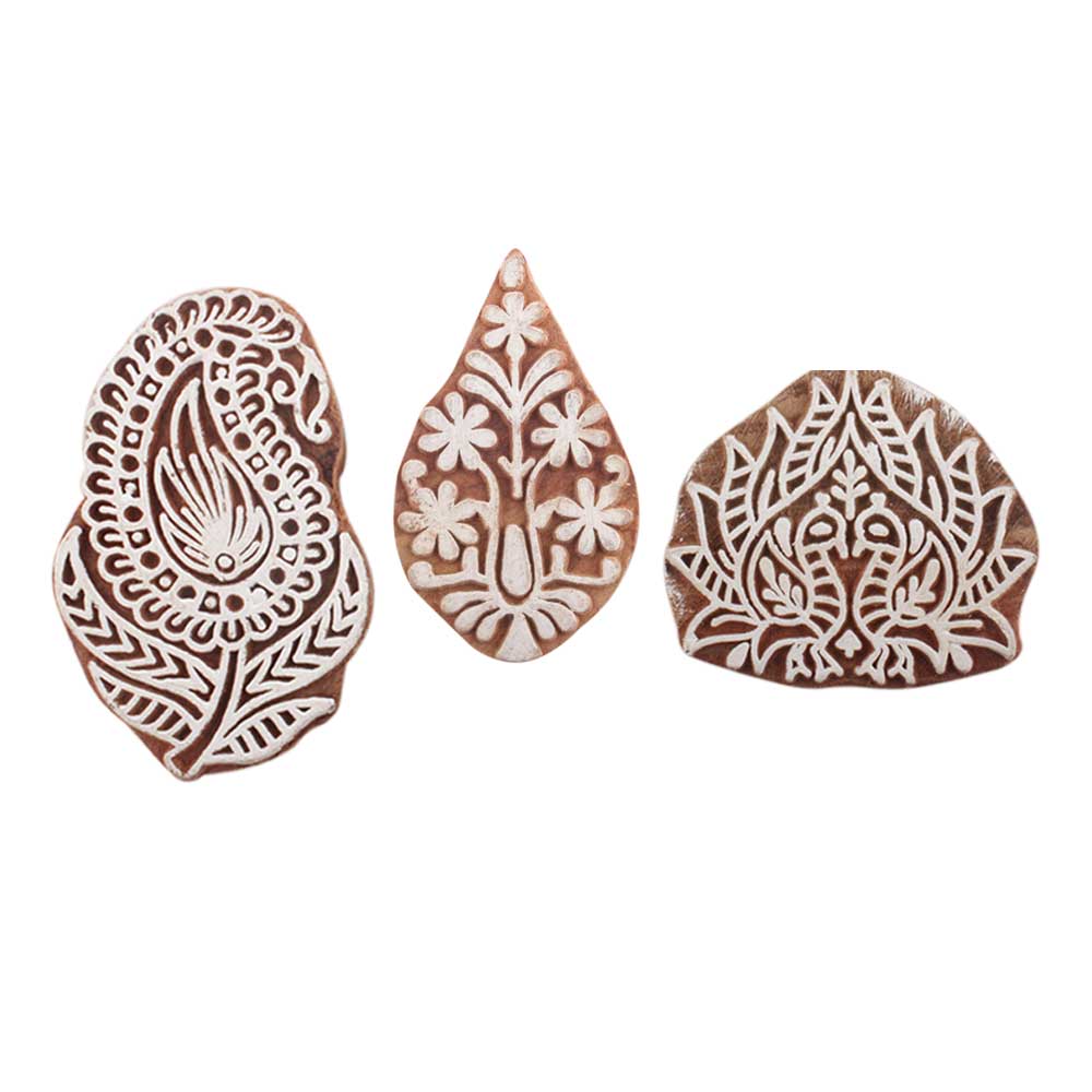 Set of 3 Piece New Mix Wooden Printing Blocks. Ideal for use on Fabric, Paper, Canvas, etc. These Blocks can be use to Print with Oil Colors, Fabric Colors, Water Colors, Acrylic Colors and Vegetable Colors.