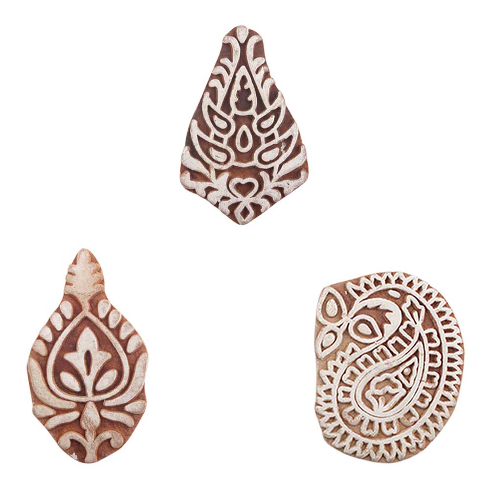 Set of 3 Piece New Mix Wooden Printing Blocks. Ideal for use on Fabric, Paper, Canvas, etc. These Blocks can be use to Print with Oil Colors, Fabric Colors, Water Colors, Acrylic Colors and Vegetable Colors.