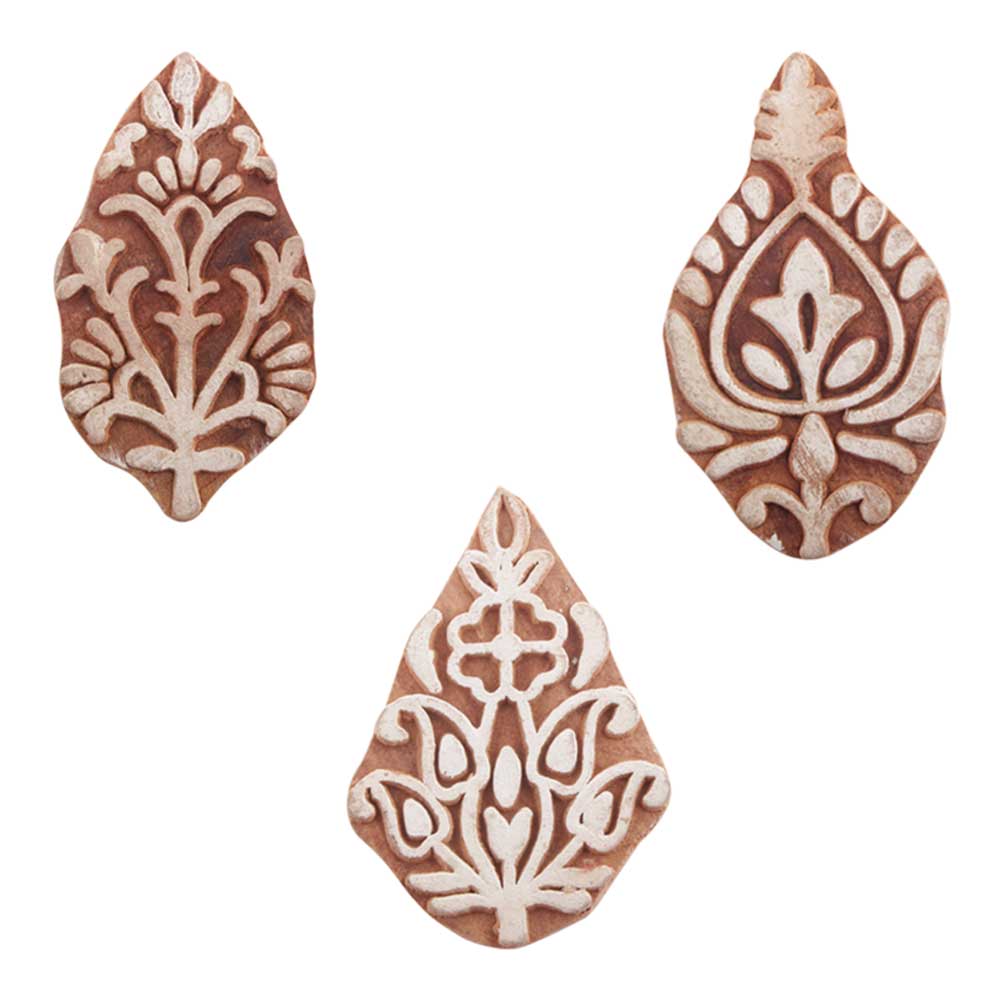 Set of 3 Piece New Mix Wooden Printing Blocks. Ideal for use on Fabric, Paper, Canvas, etc. These Blocks can be use to Print with Oil Colors, Fabric Colors, Water Colors, Acrylic Colors and Vegetable Colors.