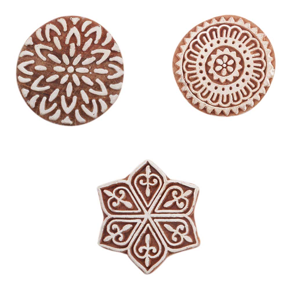 Set of 3 Piece New Mix Wooden Printing Blocks. Ideal for use on Fabric, Paper, Canvas, etc. These Blocks can be use to Print with Oil Colors, Fabric Colors, Water Colors, Acrylic Colors and Vegetable Colors.
