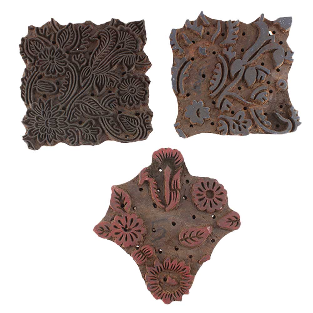 Set of 3 Piece New Mix Wooden Printing Blocks. Ideal for use on Fabric, Paper, Canvas, etc. These Blocks can be use to Print with Oil Colors, Fabric Colors, Water Colors, Acrylic Colors and Vegetable Colors.