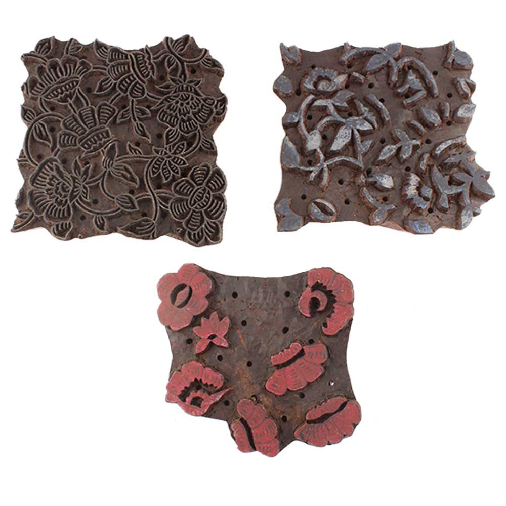 Set of 3 Piece New Mix Wooden Printing Blocks. Ideal for use on Fabric, Paper, Canvas, etc. These Blocks can be use to Print with Oil Colors, Fabric Colors, Water Colors, Acrylic Colors and Vegetable Colors.