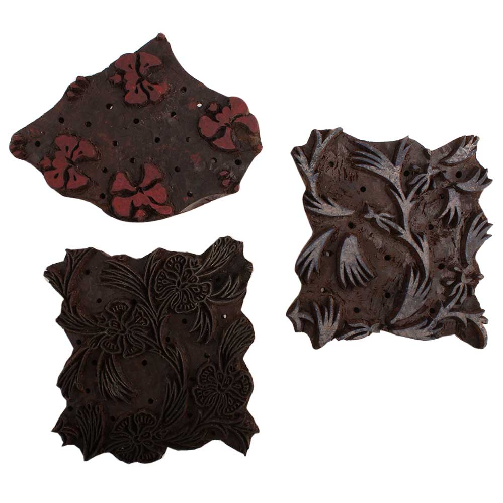 Set of 3 Piece New Mix Wooden Printing Block. Ideal for Using on Fabric, Paper, Canvas, etc. These Blocks can be use to Print with Oil Colors, Fabric Colors, Water Colors, Acrylic Colors and Vegetable Colors.