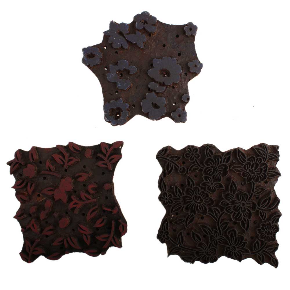 Set of 3 Piece New Mix Wooden Printing Block. Ideal for Using on Fabric, Paper, Canvas, etc. These Blocks can be use to Print with Oil Colors, Fabric Colors, Water Colors, Acrylic Colors and Vegetable Colors.