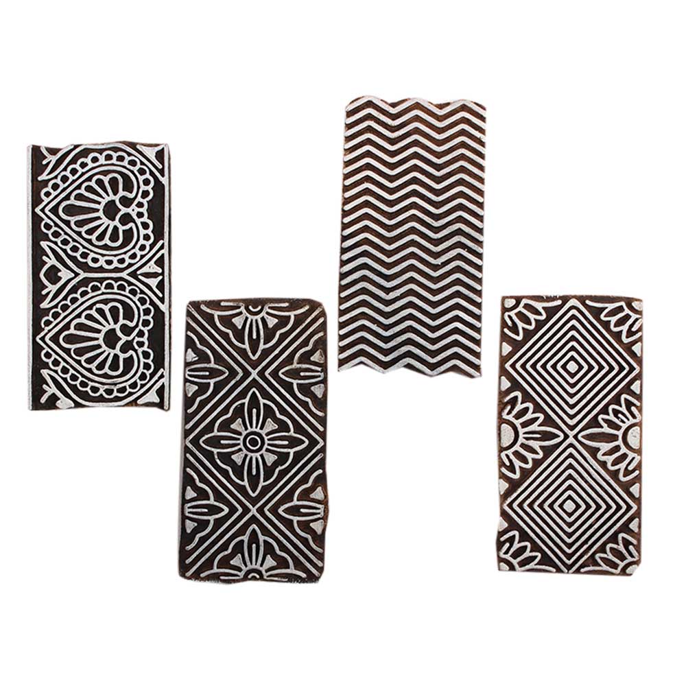 Set of 4 Piece New Mix Wooden Printing Block. Ideal for Using on Fabric, Paper, Canvas, etc. These Blocks can be use to Print with Oil Colors, Fabric Colors, Water Colors, Acrylic Colors and Vegetable Colors.