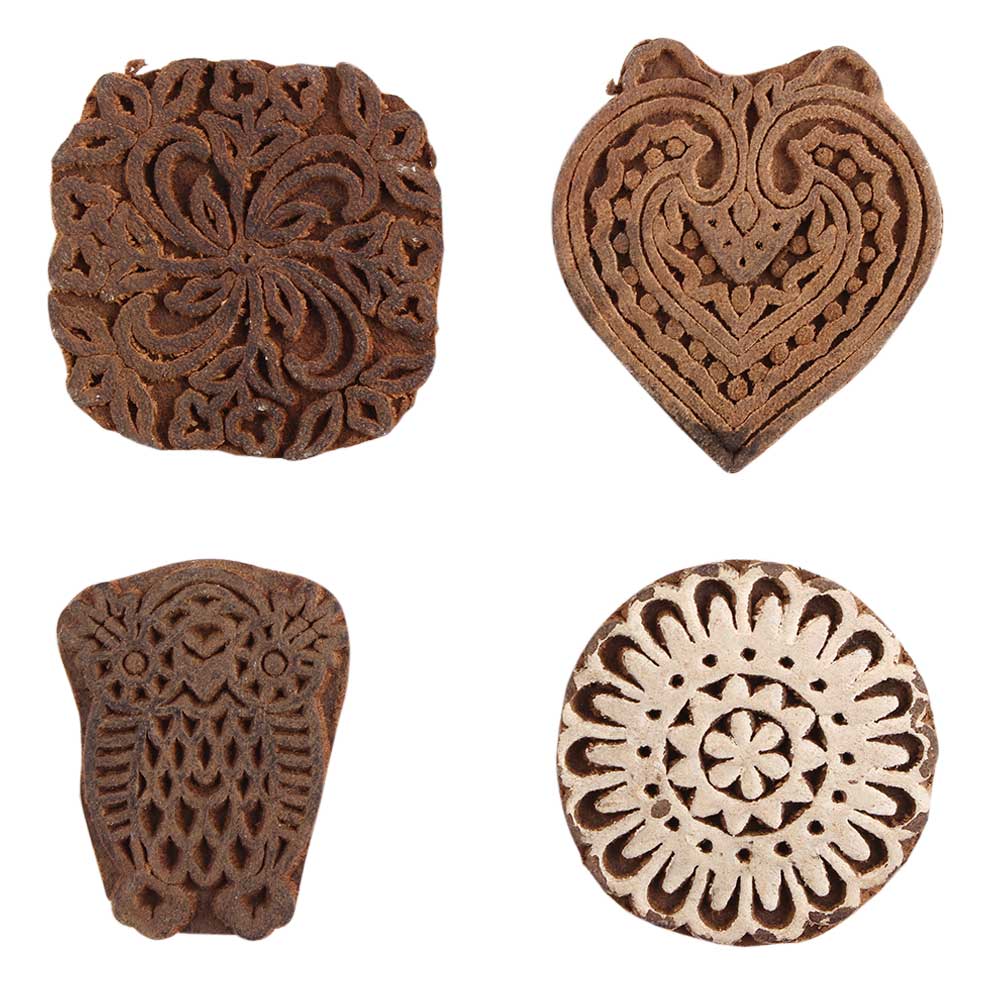 Set of 4 Piece New Mix Wooden Printing Block. Ideal for Using on Fabric, Paper, Canvas, etc. These Blocks can be use to Print with Oil Colors, Fabric Colors, Water Colors, Acrylic Colors and Vegetable Colors.