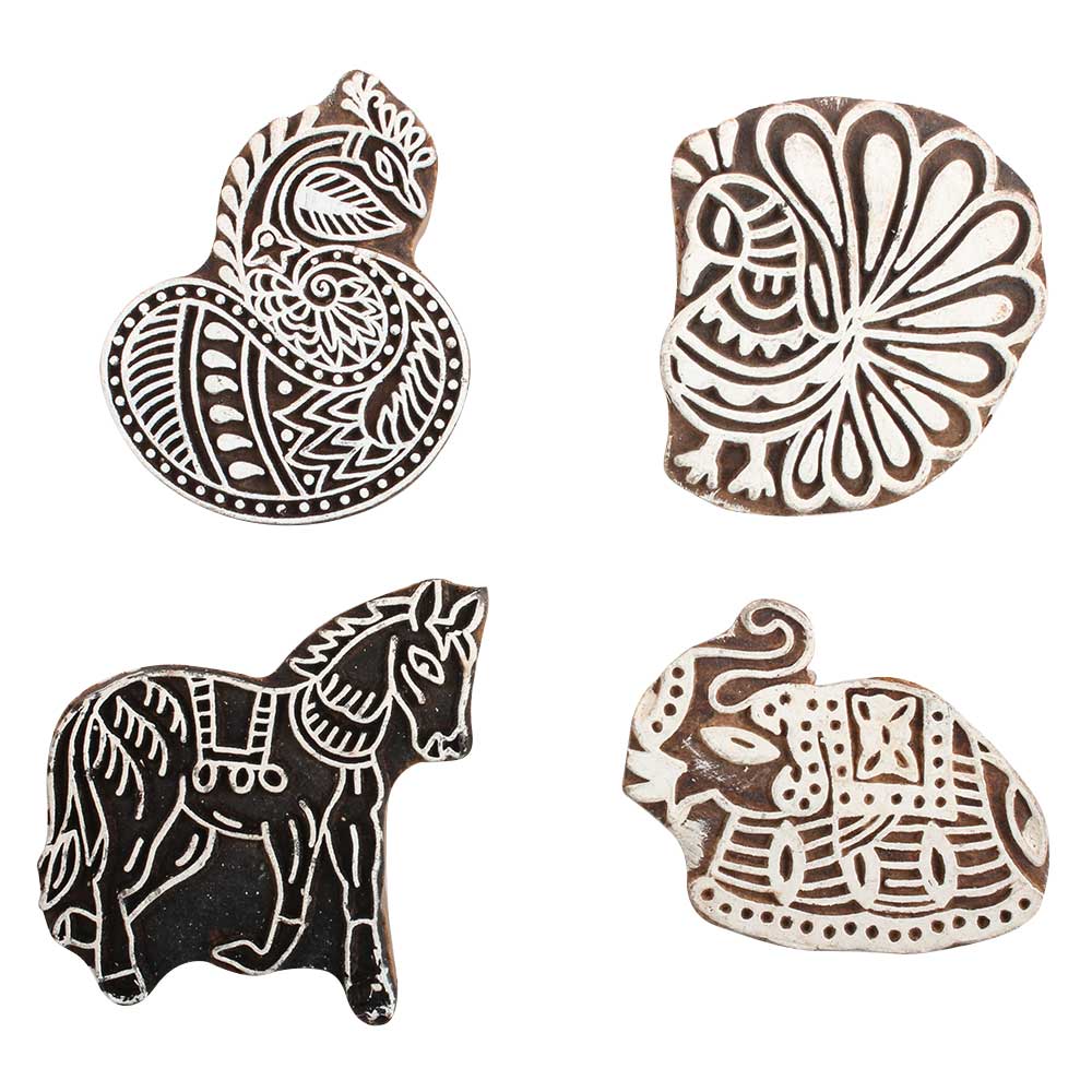 Set of 4 Piece New Mix Wooden Printing Block. Ideal for Using on Fabric, Paper, Canvas, etc. These Blocks can be use to Print with Oil Colors, Fabric Colors, Water Colors, Acrylic Colors and Vegetable Colors.