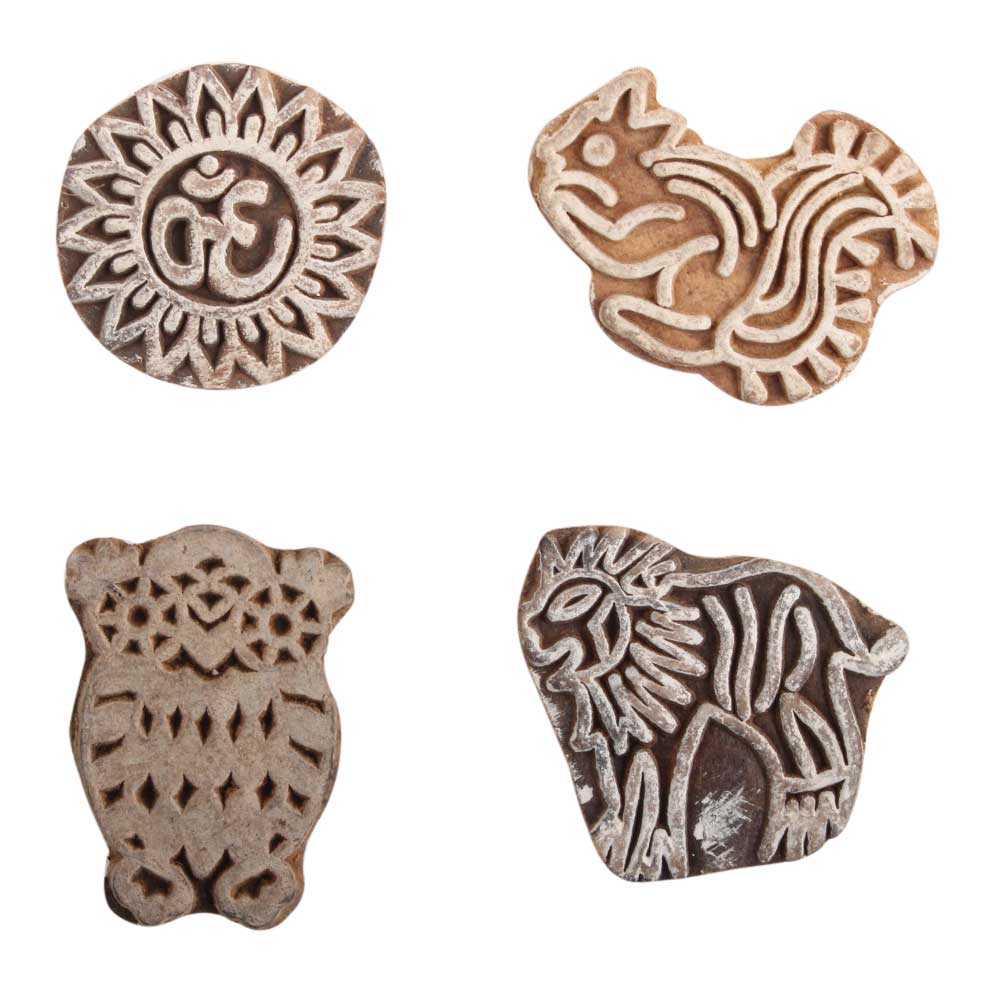 Set of 4 Piece New Mix Wooden Printing Block. Ideal for use on Fabric, Paper, Canvas, Etc. These Blocks can be use to Print with Oil Colors, Fabric Colors, Water Colors, Acrylic Colors and Vegetable Colors.