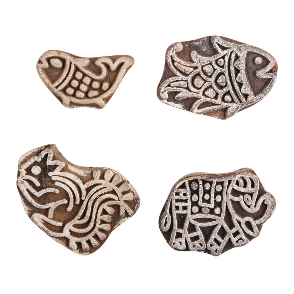 Set of 4 Piece New Mix Wooden Printing Block. Ideal for use on Fabric, Paper, Canvas, Etc. These Blocks can be use to Print with Oil Colors, Fabric Colors, Water Colors, Acrylic Colors and Vegetable Colors.