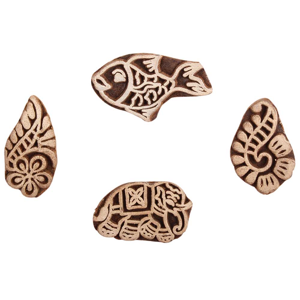 Set of 4 Piece New Mix Wooden Printing Block. Ideal for use on Fabric, Paper, Canvas, etc. These Blocks can be use to Print with Oil Colors, Fabric Colors, Water Colors, Acrylic Colors and Vegetable Colors.
