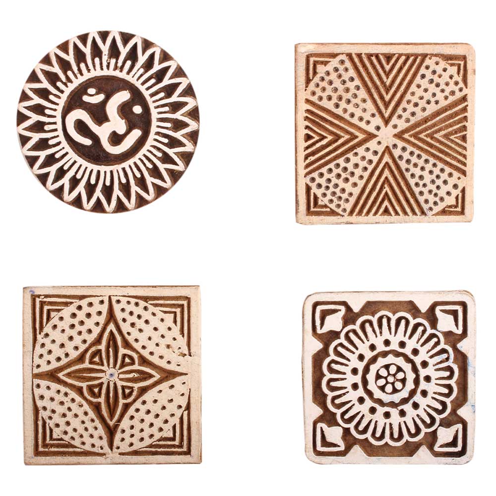 Set of 4 Piece New Mix Wooden Printing Block. Ideal for use on Fabric, Paper, Canvas, etc. These Blocks can be use to Print with Oil Colors, Fabric Colors, Water Colors, Acrylic Colors and Vegetable Colors.