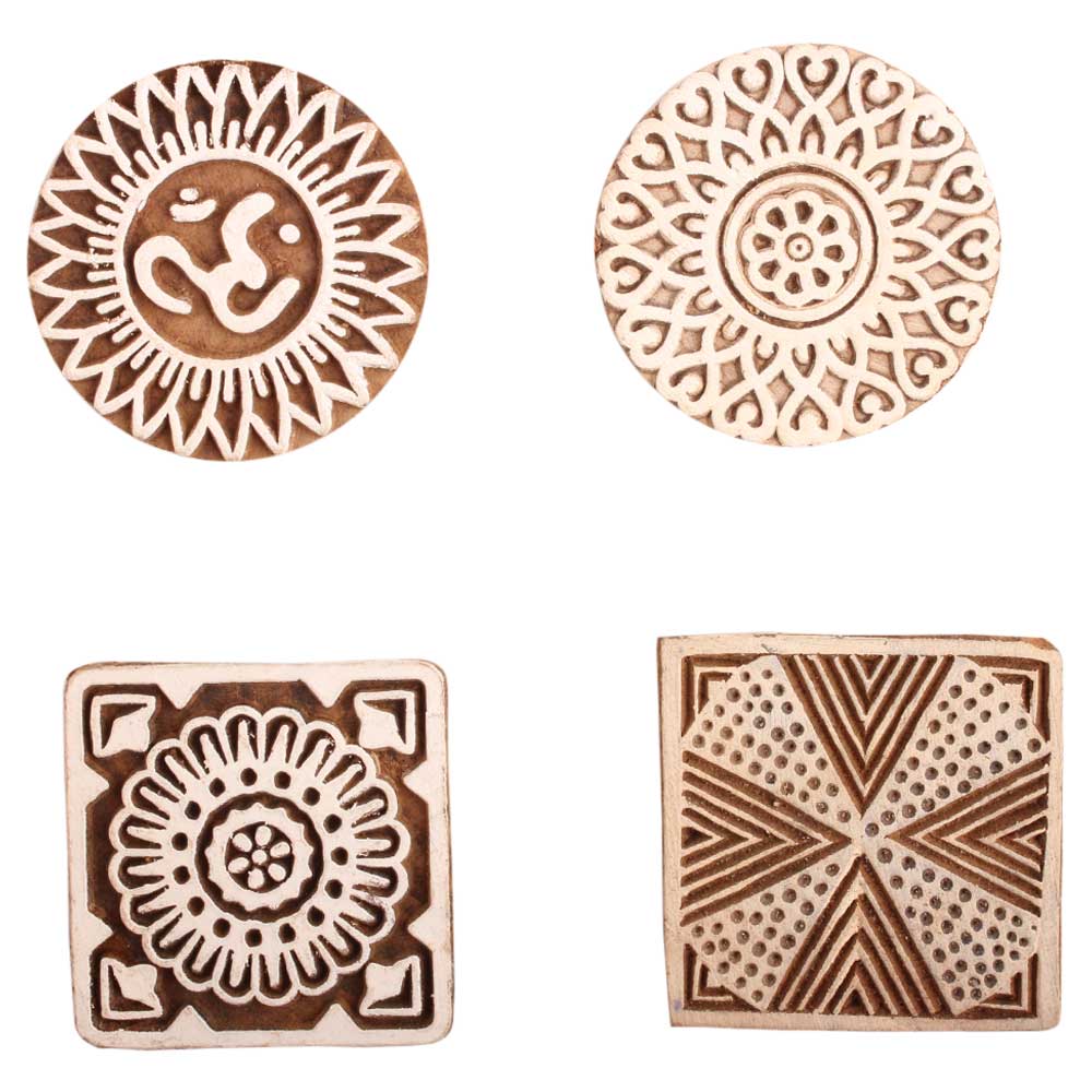 Set of 4 Piece New Mix Wooden Printing Block. Ideal for use on Fabric, Paper, Canvas, etc. These Blocks can be use to Print with Oil Colors, Fabric Colors, Water Colors, Acrylic Colors and Vegetable Colors.