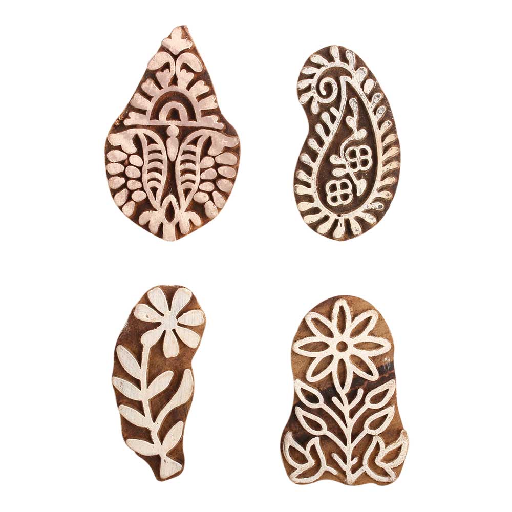 Set of 4 Piece New Mix Wooden Printing Block. Ideal for use on Fabric, Paper, Canvas, etc. These Blocks can be use to Print with Oil Colors, Fabric Colors, Water Colors, Acrylic Colors and Vegetable Colors.