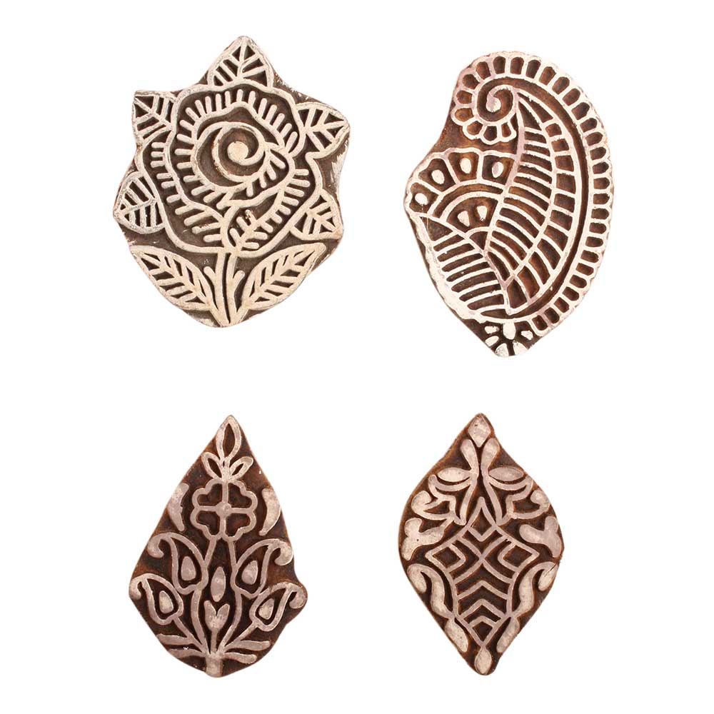 Set of 4 Piece New Mix Wooden Printing Block. Ideal for use on Fabric, Paper, Canvas, etc. These Blocks can be use to Print with Oil Colors, Fabric Colors, Water Colors, Acrylic Colors and Vegetable Colors.