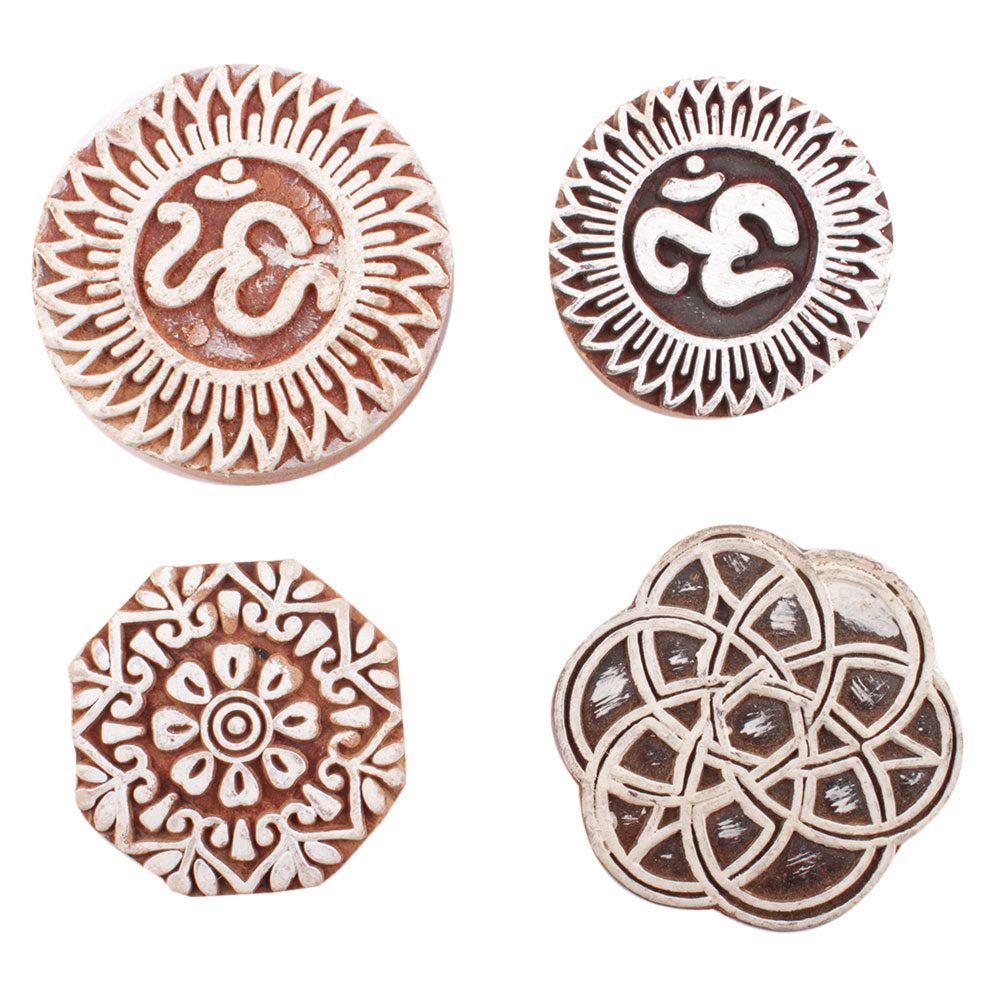 Set of 4 Piece New Mix Wooden Printing Block. Ideal for use on Fabric, Paper, Canvas, etc. These Blocks can be use to Print with Oil Colors, Fabric Colors, Water Colors, Acrylic Colors and Vegetable Colors.