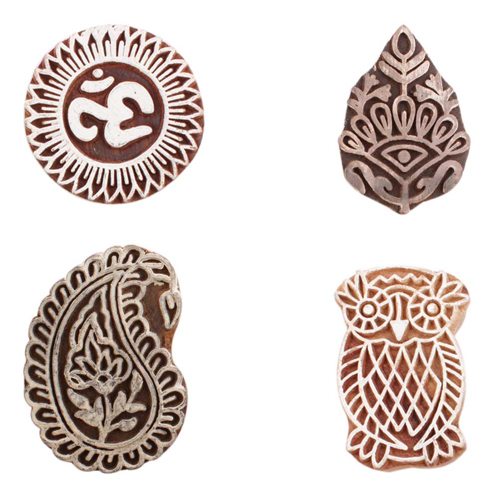 Set of 4 Piece New Mix Wooden Printing Block. Ideal for use on Fabric, Paper, Canvas, etc. These Blocks can be use to Print with Oil Colors, Fabric Colors, Water Colors, Acrylic Colors and Vegetable Colors.
