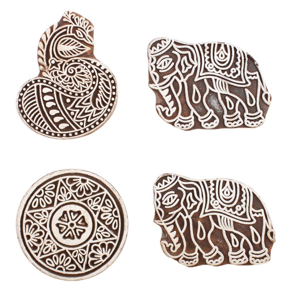Set of 4 Piece New Mix Wooden Printing Block. Ideal for use on Fabric, Paper, Canvas, etc. These Blocks can be use to Print with Oil Colors, Fabric Colors, Water Colors, Acrylic Colors and Vegetable Colors.