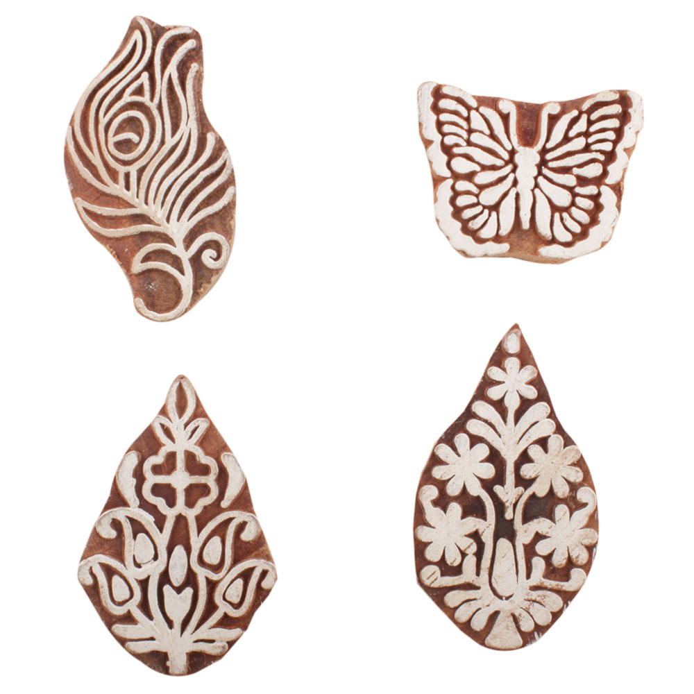 Set of 4 Piece New Mix Wooden Printing Block. Ideal for use on Fabric, Paper, Canvas, etc. These Blocks can be use to Print with Oil Colors, Fabric Colors, Water Colors, Acrylic Colors and Vegetable Colors.