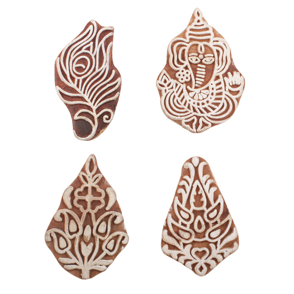 Set of 4 Piece New Mix Wooden Printing Block. Ideal for use on Fabric, Paper, Canvas, etc. These Blocks can be use to Print with Oil Colors, Fabric Colors, Water Colors, Acrylic Colors and Vegetable Colors.