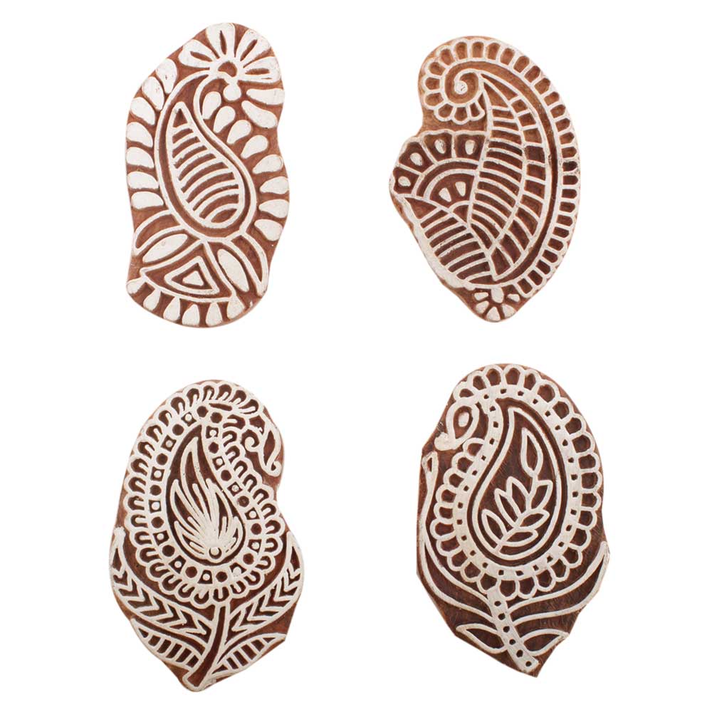 Set of 4 Piece New Mix Wooden Printing Block. Ideal for use on Fabric, Paper, Canvas, etc. These Blocks can be use to Print with Oil Colors, Fabric Colors, Water Colors, Acrylic Colors and Vegetable Colors.
