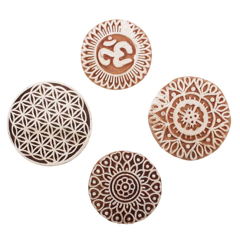 Set of 4 Piece New Mix Wooden Printing Block. Ideal for use on Fabric, Paper, Canvas, etc. These Blocks can be use to Print with Oil Colors, Fabric Colors, Water Colors, Acrylic Colors and Vegetable Colors.