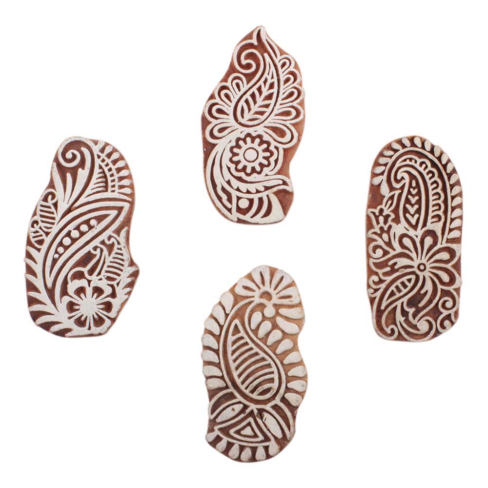 Set of 4 Piece New Mix Wooden Printing Block. Ideal for use on Fabric, Paper, Canvas, etc. These Blocks can be use to Print with Oil Colors, Fabric Colors, Water Colors, Acrylic Colors and Vegetable Colors.
