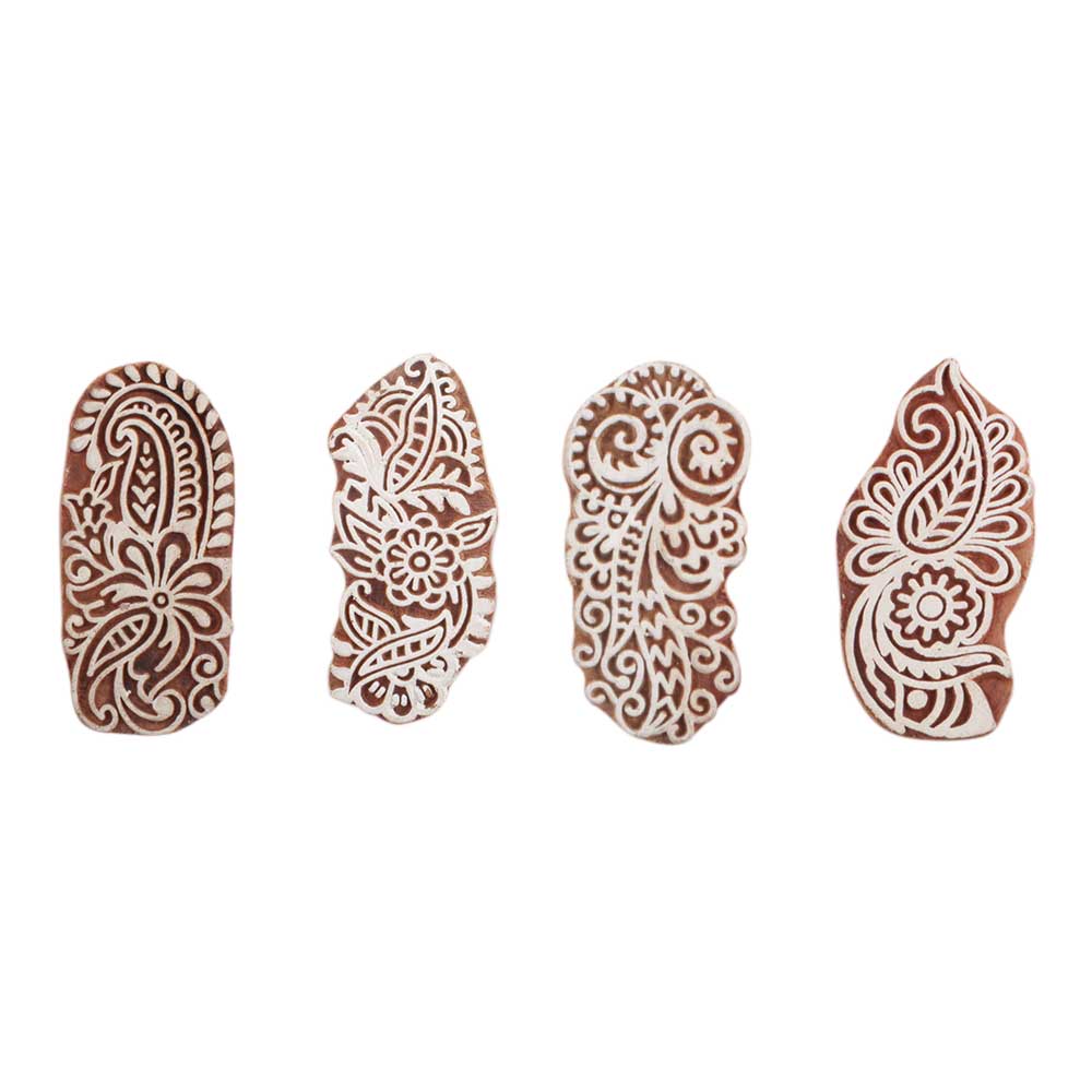 Set of 4 Piece New Mix Wooden Printing Block. Ideal for use on Fabric, Paper, Canvas, etc. These Blocks can be use to Print with Oil Colors, Fabric Colors, Water Colors, Acrylic Colors and Vegetable Colors.