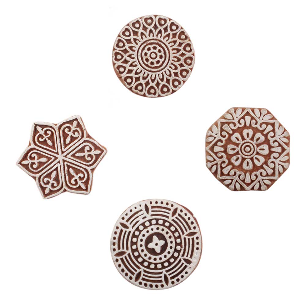 Set of 4 Piece New Mix Wooden Printing Block. Ideal for use on Fabric, Paper, Canvas, etc. These Blocks can be use to Print with Oil Colors, Fabric Colors, Water Colors, Acrylic Colors and Vegetable Colors.