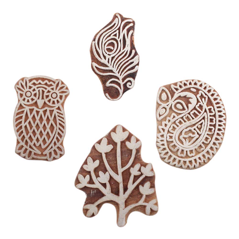 Set of 4 Piece New Mix Wooden Printing Block. Ideal for use on Fabric, Paper, Canvas, etc. These Blocks can be use to Print with Oil Colors, Fabric Colors, Water Colors, Acrylic Colors and Vegetable Colors.