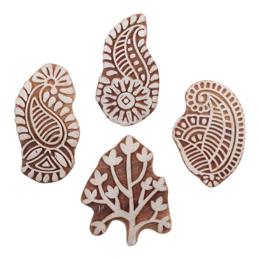 Set of 4 Piece New Mix Wooden Printing Block. Ideal for use on Fabric, Paper, Canvas, etc. These Blocks can be use to Print with Oil Colors, Fabric Colors, Water Colors, Acrylic Colors and Vegetable Colors.