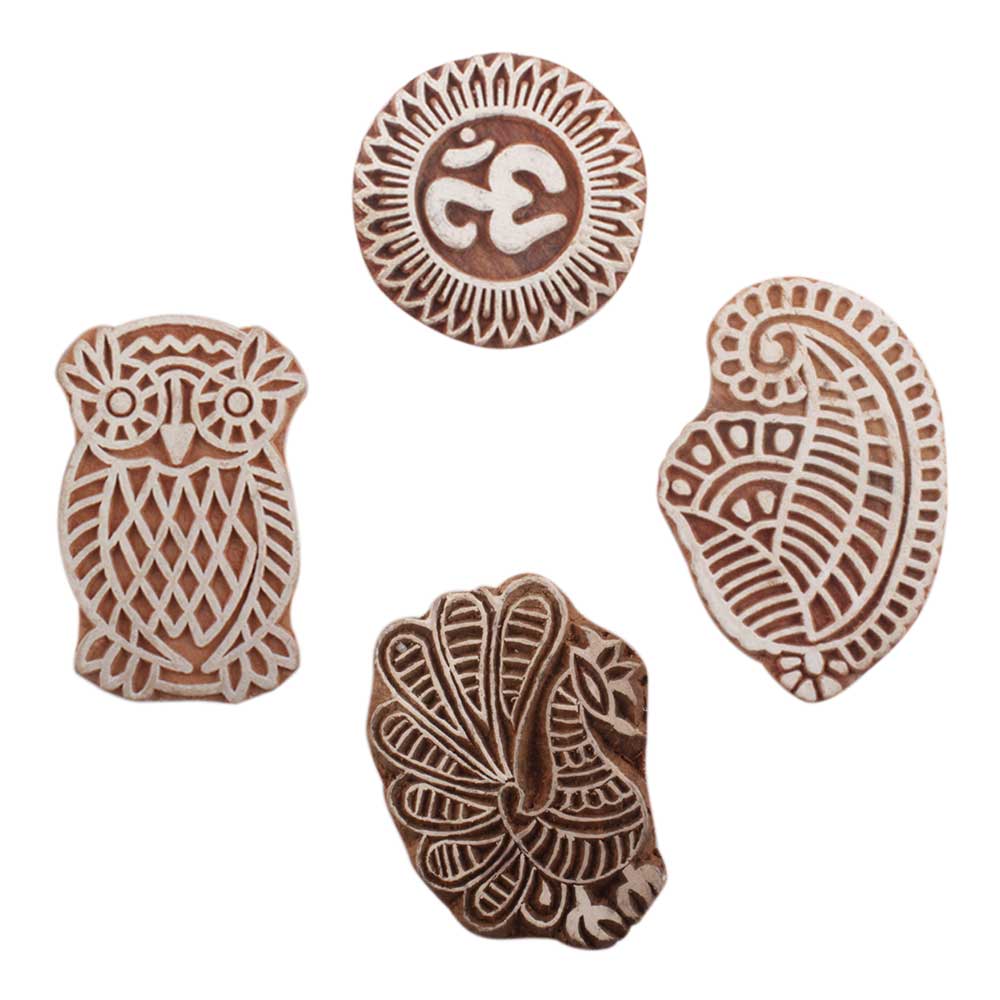 Set of 4 Piece New Mix Wooden Printing Block. Ideal for use on Fabric, Paper, Canvas, etc. These Blocks can be use to Print with Oil Colors, Fabric Colors, Water Colors, Acrylic Colors and Vegetable Colors.