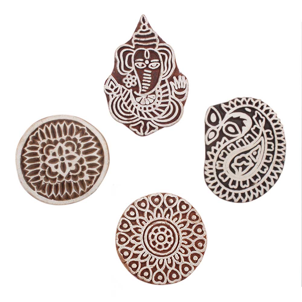 Set of 4 Piece New Mix Wooden Printing Block. Ideal for use on Fabric, Paper, Canvas, etc. These Blocks can be use to Print with Oil Colors, Fabric Colors, Water Colors, Acrylic Colors and Vegetable Colors.