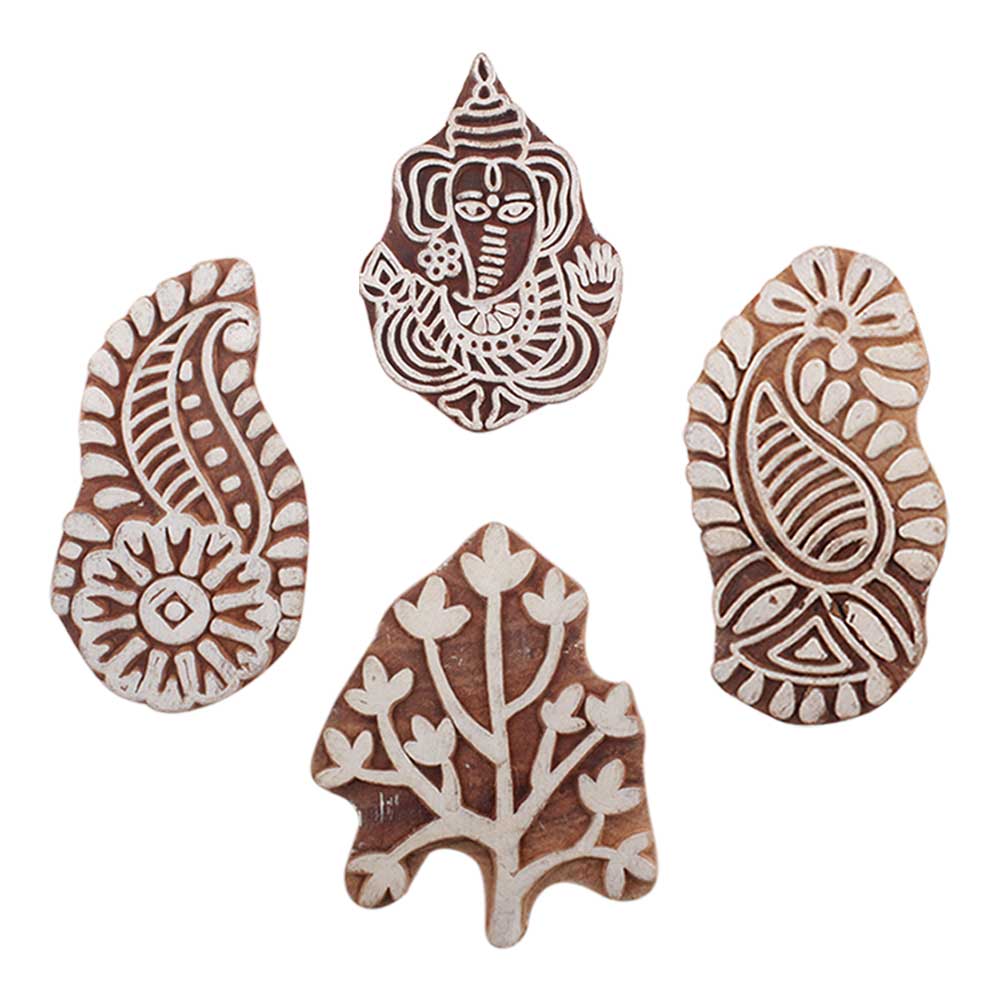 Set of 4 Piece New Mix Wooden Printing Blocks. Ideal for use on Fabric, Paper, Canvas, etc. These Blocks can be use to Print with Oil Colors, Fabric Colors, Water Colors, Acrylic Colors and Vegetable Colors.