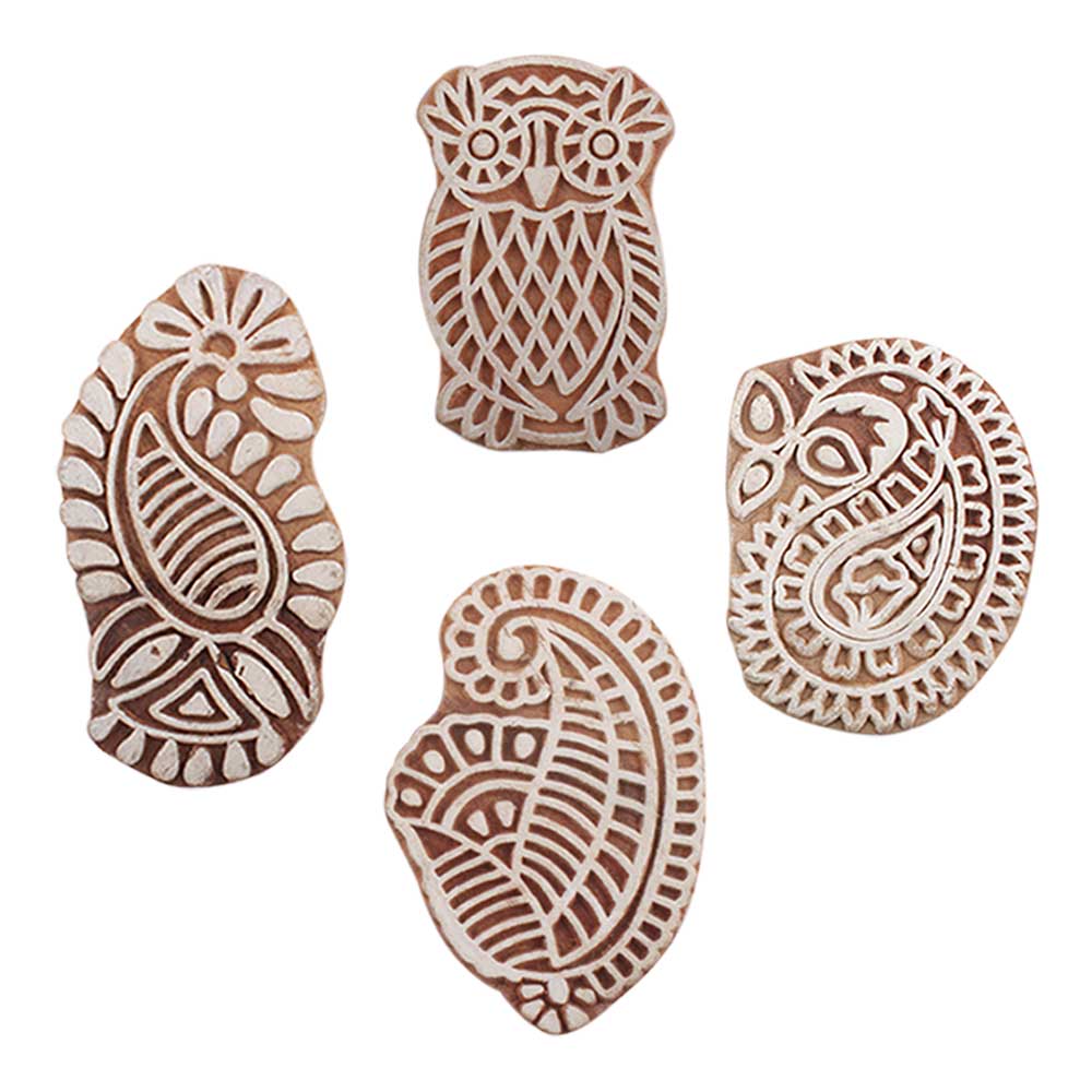 Set of 4 Piece New Mix Wooden Printing Blocks. Ideal for use on Fabric, Paper, Canvas, etc. These Blocks can be use to Print with Oil Colors, Fabric Colors, Water Colors, Acrylic Colors and Vegetable Colors.