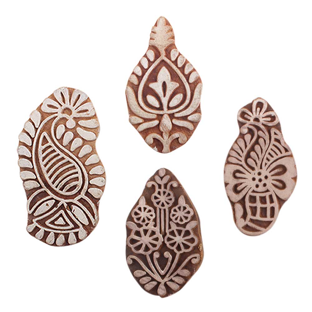 Set of 4 Piece New Mix Wooden Printing Blocks. Ideal for use on Fabric, Paper, Canvas, etc. These Blocks can be use to Print with Oil Colors, Fabric Colors, Water Colors, Acrylic Colors and Vegetable Colors.